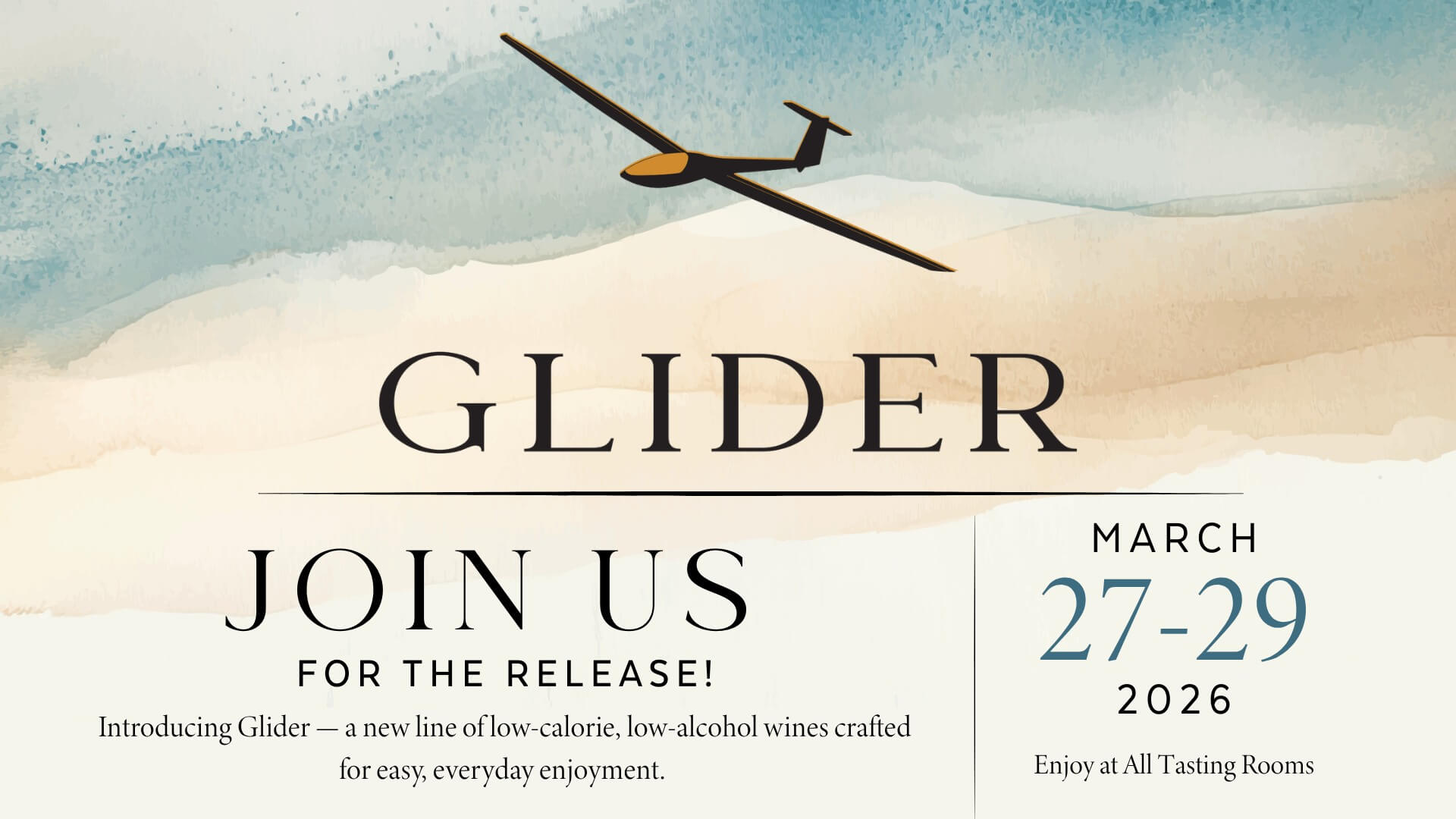 Be among the first to enjoy the new Glider Series wines—available exclusively in tasting rooms for one weekend only. Inspired by Airfield's aviation heritage, the Glider Series celebrates craftsmanship and exploration.